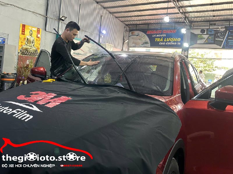 Sử dụng máy sấy nhiệt để tạo hình tấm phim theo độ cong của kính xe CX5 (đặc biệt là kính lái và kính hậu). Bước này đòi hỏi tay nghề thợ phải cực kỳ cao để tránh làm hỏng phim.