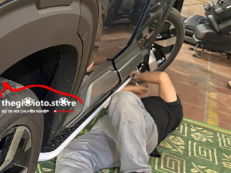 Kỹ thuật viên sẽ kiểm tra tổng thể phần hông xe và tư vấn mẫu bậc bước chân ô tô phù hợp nhất với màu sắc và nhu cầu sử dụng của chủ xe.