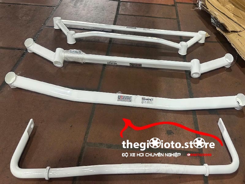 Thanh giằng trước (Front Strut Bar): Lắp ở khoang động cơ, kết nối hai đỉnh giảm xóc trước. Đây là thanh quan trọng nhất để cải thiện cảm giác lái.
