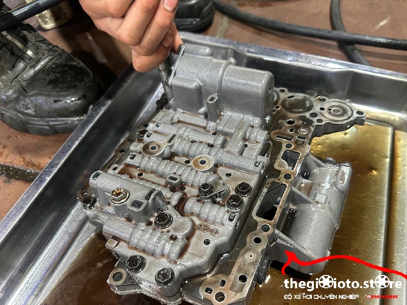 Hạ đáy các-te hộp số, tháo rời bộ vỉ van.