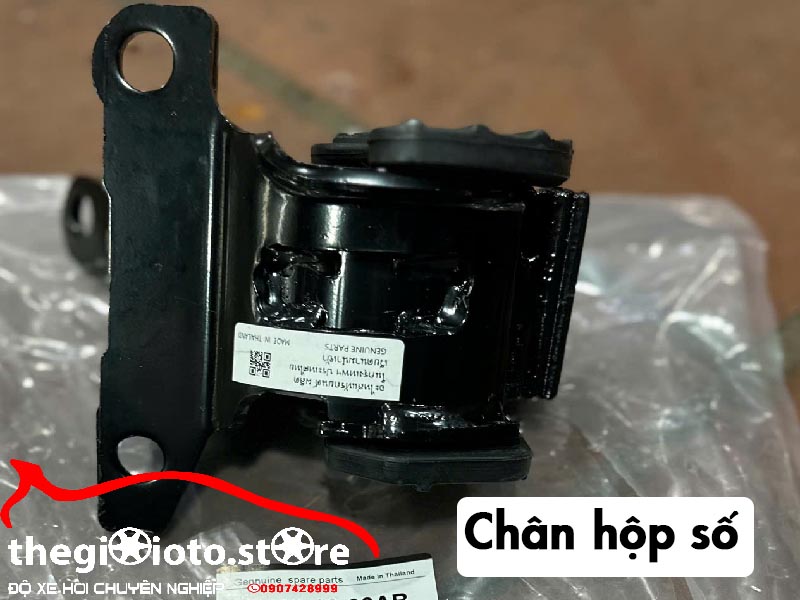 Nằm bên phải động cơ, được bắt trực tiếp vào giá đỡ hộp số. Khi cao su chân hộp số nứt hoặc xẹp, rung động từ hộp số sẽ truyền thẳng vào khung gầm → gây rung mạnh và tiếng ù lớn.